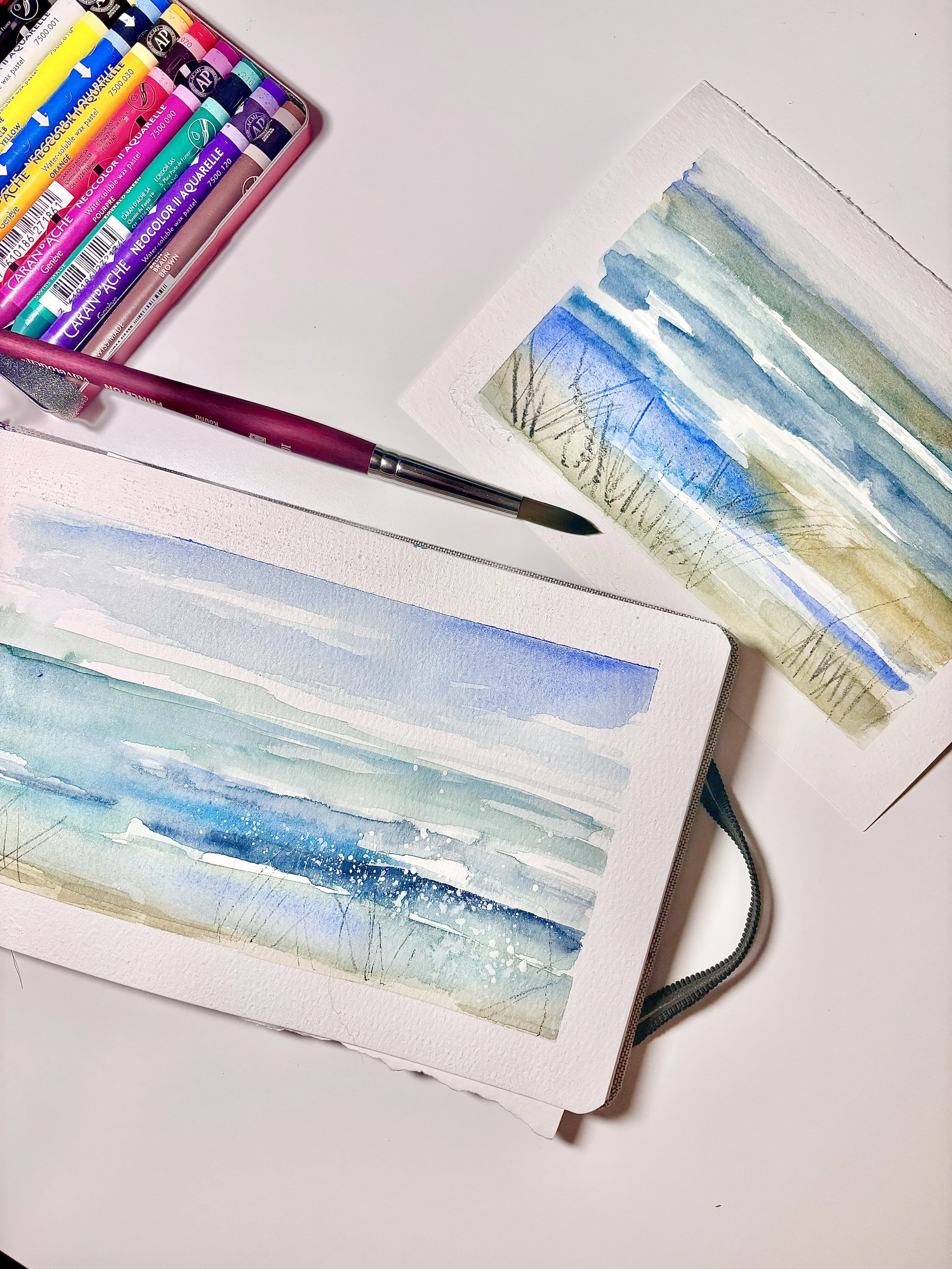 You’ll learn to break down landscapes into simple, expressive marks and transform your photos into abstract studies using china markers, watercolor, graphite, and gouache—inviting more freedom, play, and ease into your creative practice.