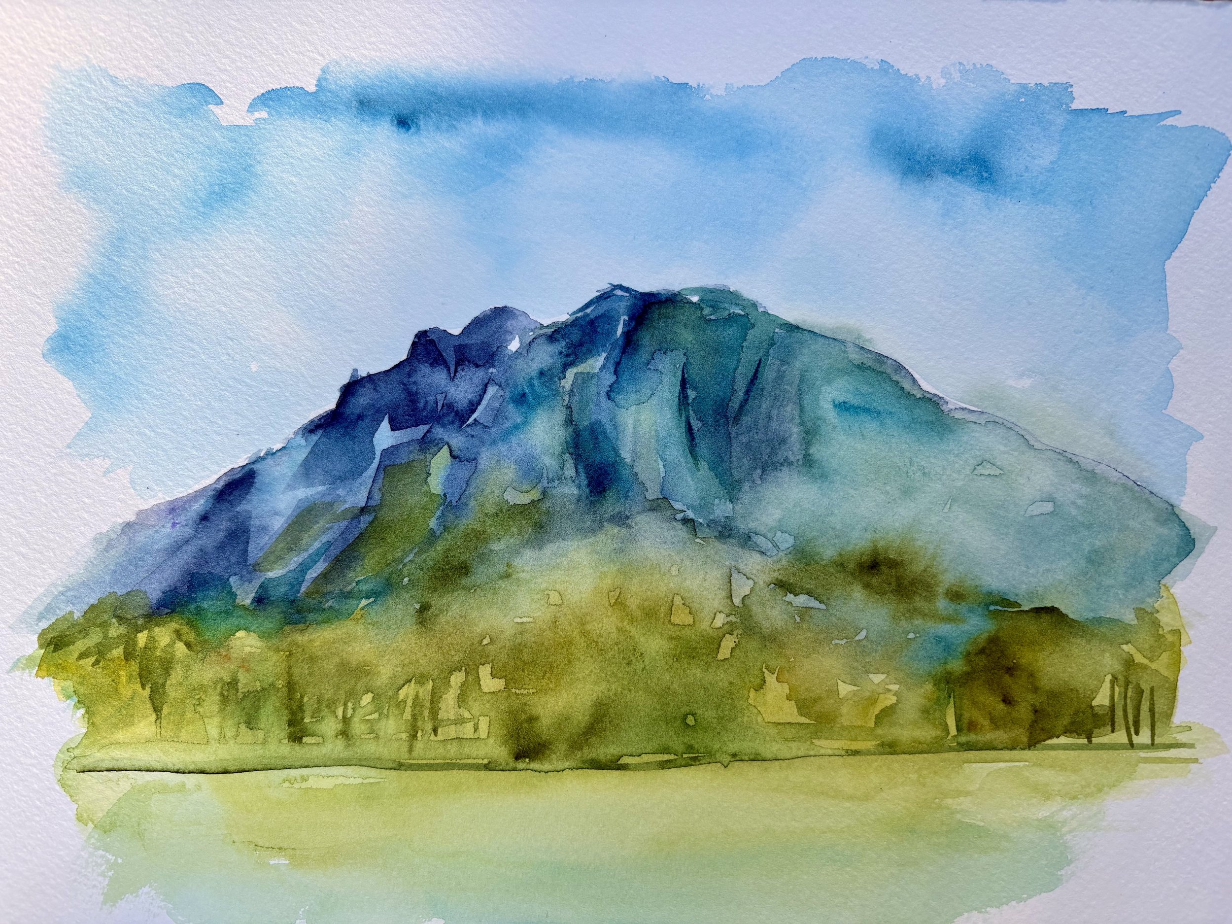 Together, we’ll explore watercolor fundamentals—such as washes, blending, layering, and creating atmospheric depth—to bring Mount Si’s misty ridges, evergreen foothills, and moody skies to life on paper.