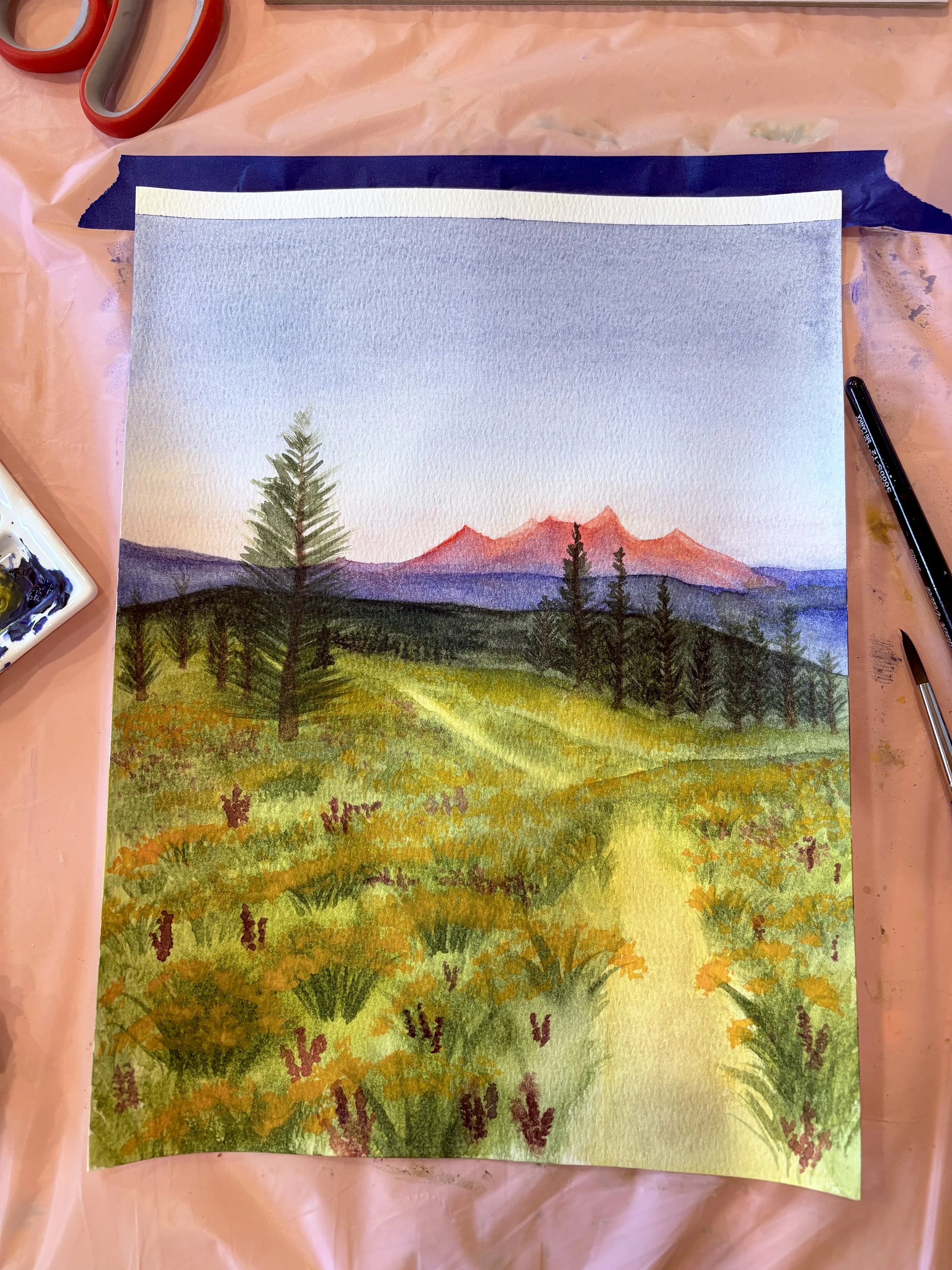 In this beginner-friendly watercolor workshop, you’ll paint from a favorite photo — a landscape, or a special moment — and learn how to transform it into a soft, expressive watercolor painting.